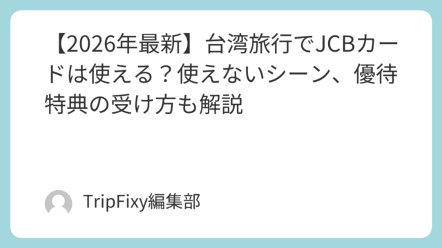 【2026年最新】台湾旅行でJCBカードは使える?使えないシーン、優待特典の受け方も解説